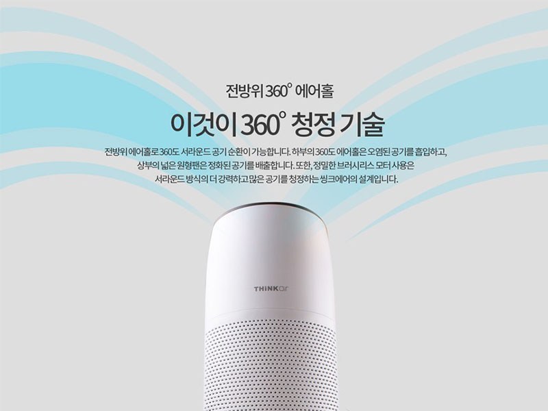 또한, 정밀한 브러시리스 모터 사용은 서라운드 방식의 더 강력하고 많은 공기를 청정하는 씽크에어의 설계입니다.