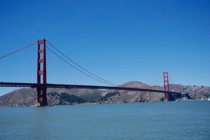 The Golden Gate Bridge is a San Francisco landmark and one of the most famous bridges in the United States. Ironically, the name "Golden Gate" comes from the name of the strait rather than the color of the bridge. The strait separates San Francisco from Marin County and is an important passage connecting it with the Pacific Ocean.