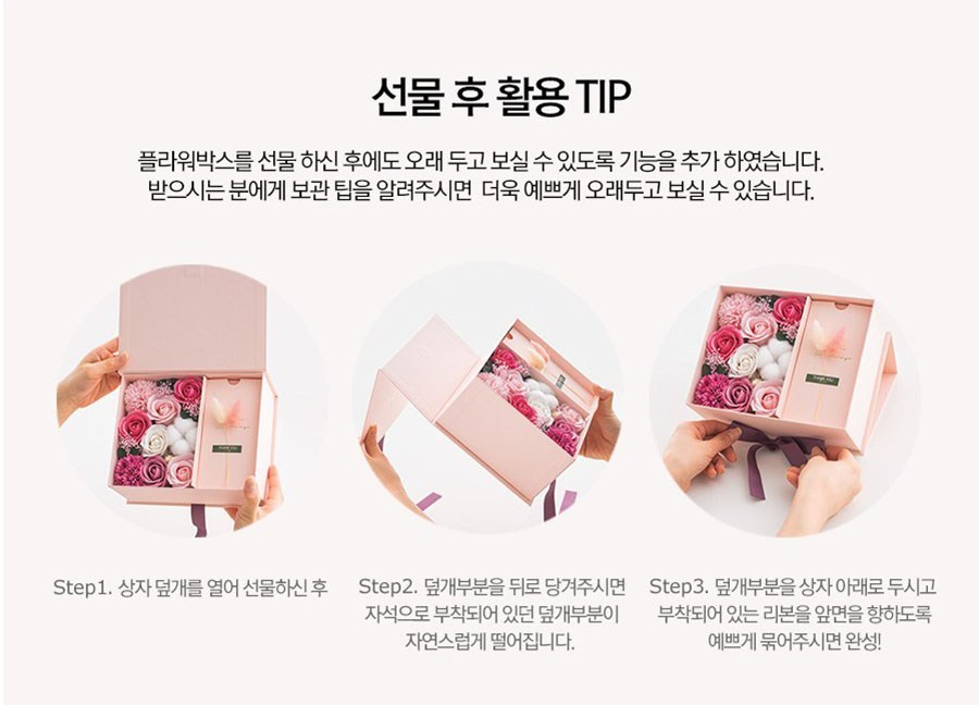 플라워박스를 선물 하신 후에도 오래 두고 보실 수 있도록 기능을 추가!