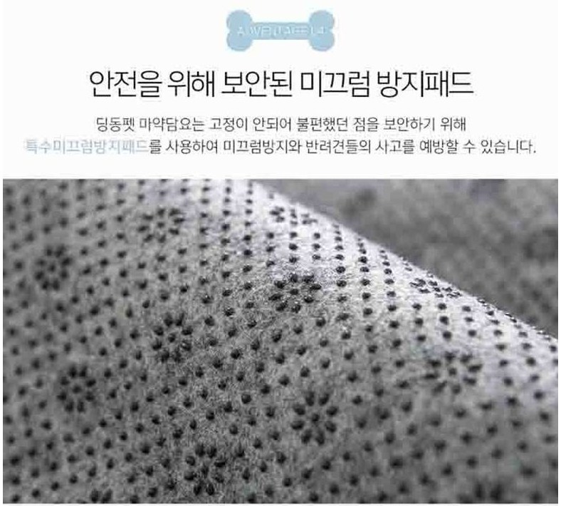- 반려견의 안전을 고려해 밑면에 미끄럼 방지 패드를 사용