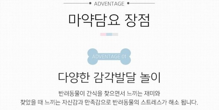 - 노즈워크를 통해 애견의 스트레스 해소에 도움을 주는 제품
