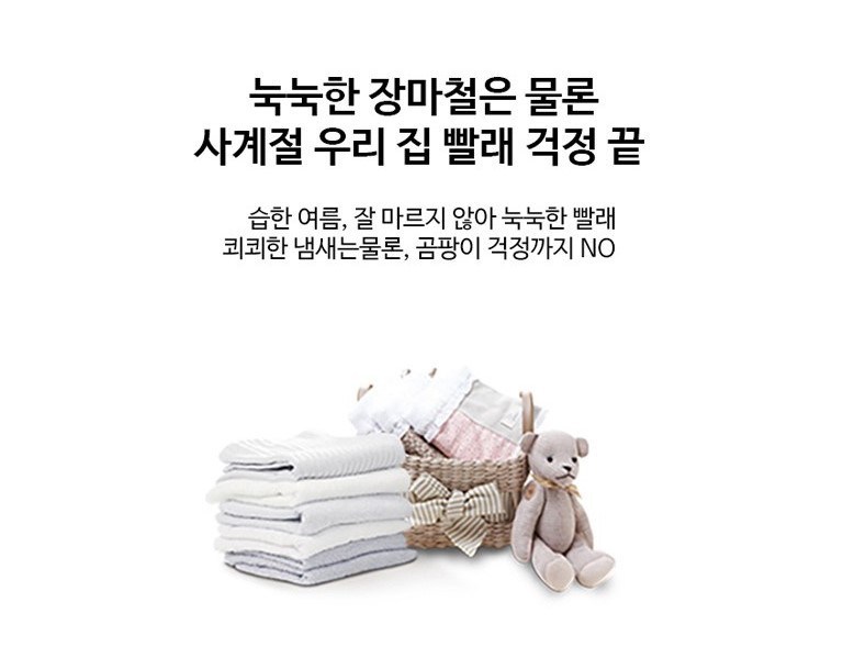 습도가 높은 눅눅한 장마철은 물론 사계절 빨래 말리는 걱정을 덜어줍니다.
