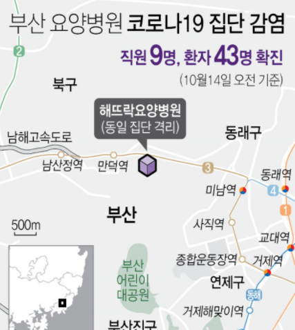 집단에서 52명이 확진된 것은 부산 집단 감염 사례 중 규모가 가장 크다.