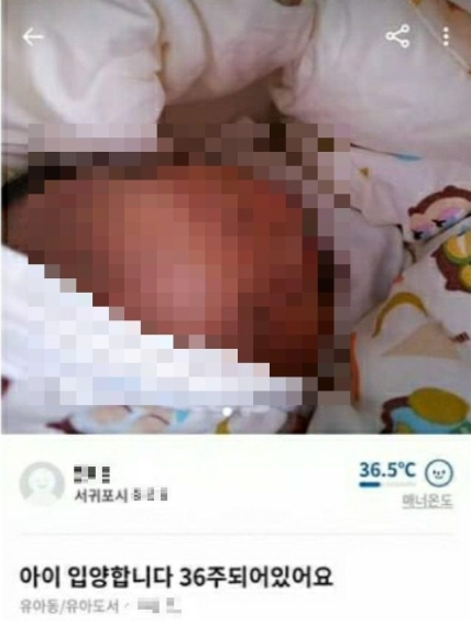해당 글은 누리꾼들에게 충격을 줬다. 바로 제목이 ‘아이 입양합니다. 36주 되어 있어요’였기 때문.