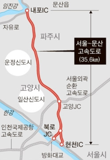 고양시 강매동(방화대교)에서 파주시 문산읍(자유로)까지 연장하는 총35.6km에 2조2900억원이 소요되는 사업입니다.