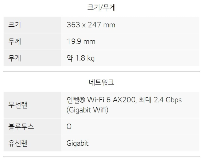 | 무게 | 1.8kg | 주요 사양 | 컨텐츠 참조 |