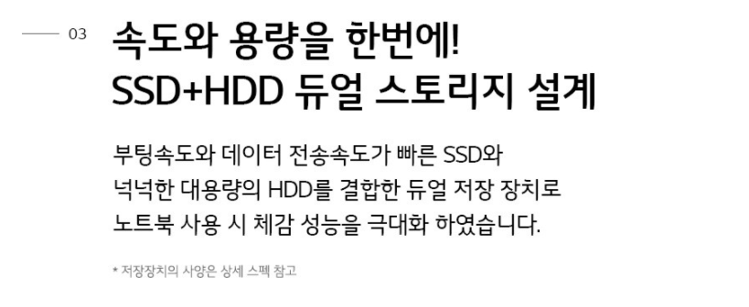 SSD를 장착되어 출시한노트북이지만 추가로 HDD를 장착하여 더 많은 저장장치를 사용할수 있도록