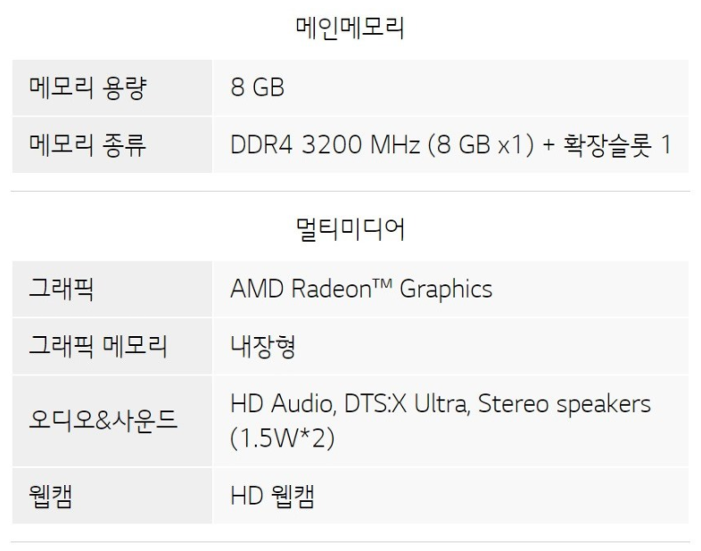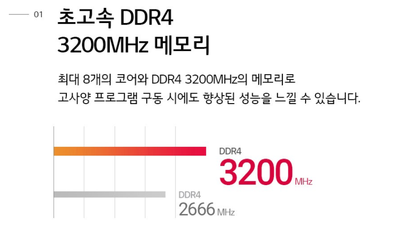 DDR4의 빠른 성능을 보유한 메모리를 8GB의 기본 스펙으로 출시되었으며