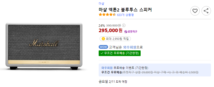 오래된 역사, 마음에 드는 디테일 블루투스 스피커 (마샬 액톤2)